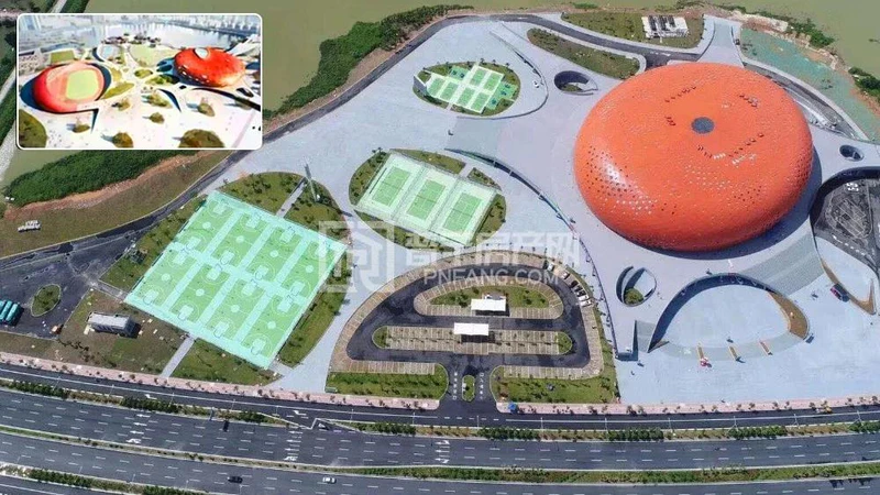 △四会市体育中心(网络图),总投资3.35亿元,体育馆建筑面积为27736.58平方米,设计座位数为5050个。