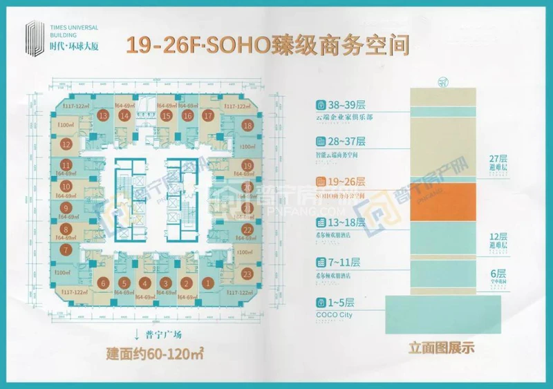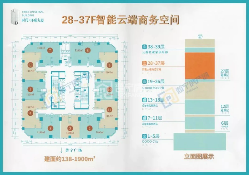 时代·环球大厦占据普宁绝对中心的黄金地段,集休闲、购物、娱乐等生活配套于一体,汇聚互联网、金融等各大高端行业,擎领普宁的商业发展脉络,未来潜力不可限量。180米高度粤东现楼第一高,刷新粤东天际线,17米挑高大堂、10部高速电梯,LOW-E中空玻璃幕墙等配置,营造尊贵、奢华、舒适、高效的办公环境,打造粤东区域甲级写字楼新标杆。