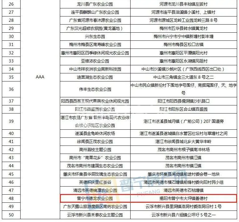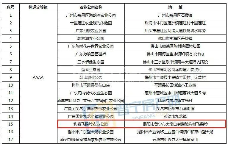 《2019广东农业公园候选名单》公示!普宁这两个公园被提名!