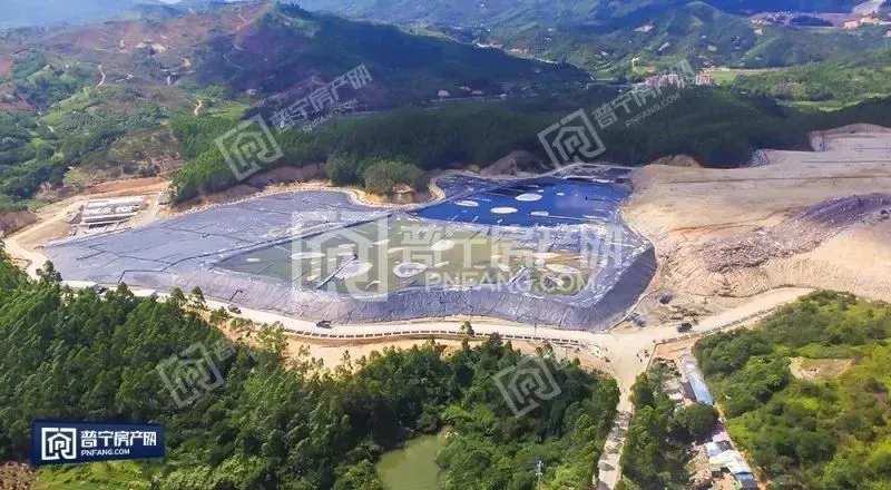 普宁市生活垃圾卫生填埋场生活垃圾填埋区拟建库容120万立方米,进场生活垃圾量按400 t/d计算。飞灰填埋区拟建库容60万立方米。飞灰产生量按垃圾焚烧量的3%(固化后)计算,则该飞灰填埋区接纳的飞灰量为78t/d,固化后飞灰比重按 1 t/m3 计,飞灰填埋区的使用年限约为20年。该生活垃圾填埋场主要用于普宁市所有垃圾焚烧飞灰日常填埋,及普宁市生活垃圾应急填埋。配套建设填埋气体综合利用设施,垃圾渗滤液导入环境园内焚烧发电厂配套渗滤液处理设施处理,规划于2022年建成。
