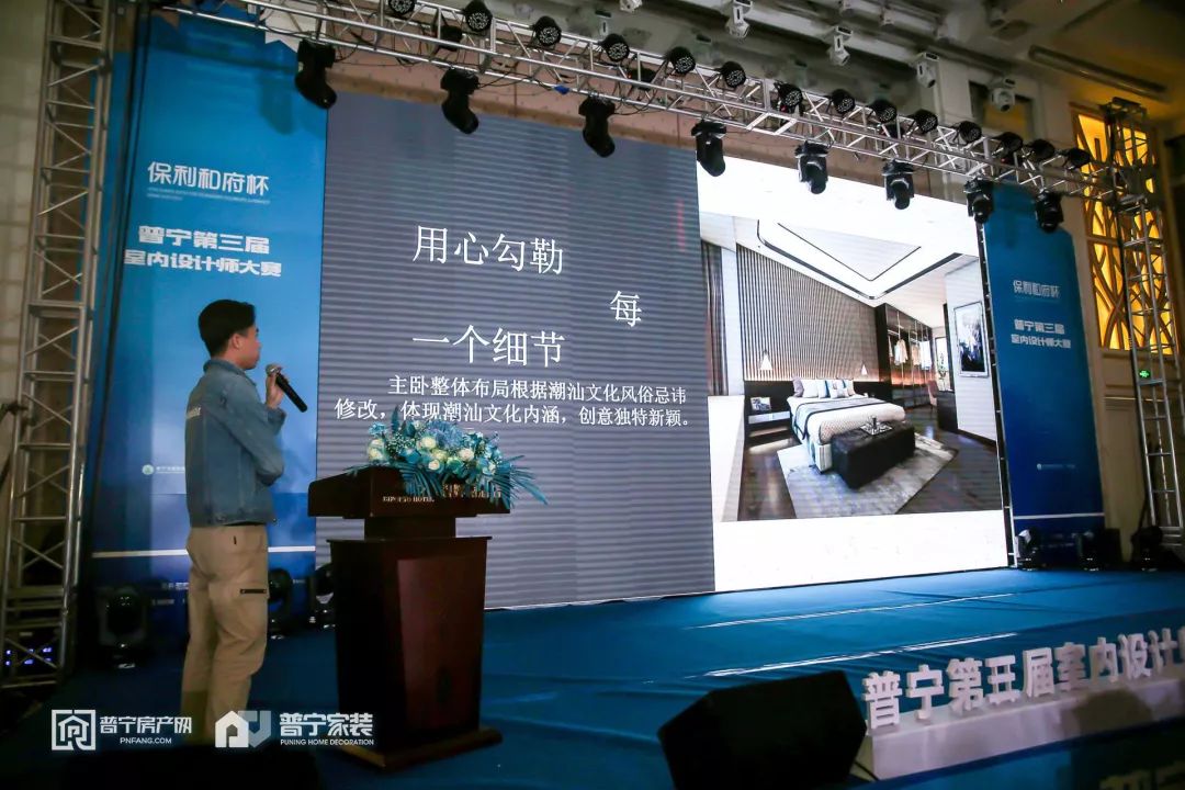 “以梦为马,不负韶华” Dream as horse, act your glorious youth. 12月30日下午6点30分 由普宁市建筑室内设计师协会主办 保利和府冠名的 普宁第三届室内设计师大赛 总决赛及颁奖典礼 选手们摩拳擦掌 准备在决赛中大显身手 那么战况究竟如何呢 接下来 请跟着小编的镜头 一起回顾下总决赛现场的盛况吧! 嘉宾签到 晚上6点30分 参赛观众及嘉宾们陆续抵达比赛现场 在签到处进行签到 签到现场井然有序 沿途还可以欣赏到选手们的优秀作品 时间转眼来到晚上7点 现场已经座无虚席 音乐律动配合舞台炫彩的灯光 让人十分期待 大赛随着主持人的开场拉开了帷幕 本次大赛由七大评委以及大众评审团 进行点评打分 还有各市领导出席观摩比赛并参与颁奖 共同见证十佳设计师的诞生 领导致辞 民政局林局长在致辞中 充分表达了对本次大赛的重视 并对普宁未来的设计行业发展 赋予很高的期望 普宁市室内建筑设计师协会王会长 在致辞中表示希望各参赛选手能够在大赛中 赛出风格,赛出自我 为推动普宁家装行业作出努力 选手阐述作品 万众期待的紧张时刻终于到来 本次大赛将15位参赛选手分为3组 逐一登场展示设计作品 选手们以饱满的自信,严谨的态度 阐述自己的设计理念 并和评审专家进行了互动 ▲胡小梅 ▲郑少文 ▲陈镇伟 ▲陈华俊 ▲陈友发 ▲郭晓林 ▲曾楠 通过专家点评 让我们对室内设计有了更加直观的了解 也为参赛设计师上了一堂生动的“现场课” 本次比赛秉持公平公正公开的原则 采取现场计分、报分的方式 为选手提供一个绿色的竞技平台 在计分的过程中 评委大咖跟大家分享了比赛过程中的心得 让在场的设计师都收获颇丰 并鼓励普宁设计师要走出去 积极参与大潮汕 乃至全省全国的设计交流评比 颁奖盛典 经过了3个小时的激烈追逐 最终的十大设计师终于诞生 本次大赛还设置了最具网络人气奖 及最具潜力设计师奖 现在让我们揭开他们的神秘面纱吧! ▲最具潜力设计师奖:黄丹丽、黄浩杰、柯志辉、谢旭佳、黄堉增 ▲十佳设计师奖:钟建涛、王进吉、何明佳、潘源、叶少伟、李佳奇、黄家裕、夏雨、李岳洲、罗东 至此 普宁第三届室内设计师大赛终于落下帷幕 让我们恭喜在这场激烈的比拼中 脱颖而出的选手们 再次感谢支持本次大赛的赞助商们 评审嘉宾以及工作人员的不辞辛苦 为期两个多月的设计师大赛 终于完美收官 让我们用一张大合照 为本次大赛画上一个圆满的句号
