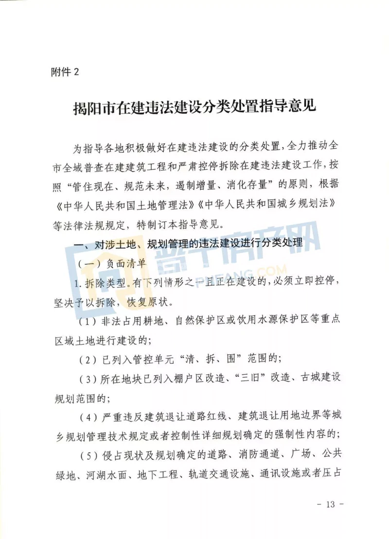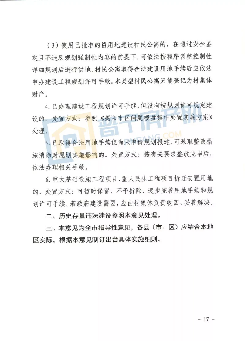 4. 已办理建设工程规划许可手续,但没有按规划许可规定建设的。处置方式:参照《揭阳市区问题楼盘集中处置实施方案》处理。