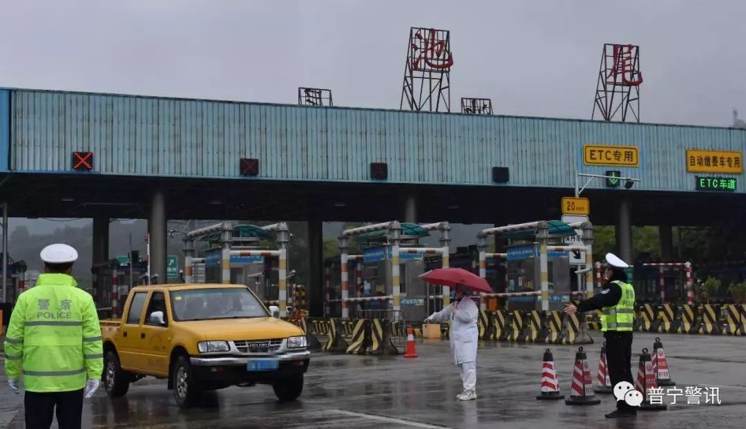 在普宁各高速路进出口处,执勤人员全面开启对过往车辆的监测消毒工作,他们不畏严寒、无惧风雨,恪尽职守,一遍一遍地筛查过往人车,风能过雨能过,疫情绝不能过!