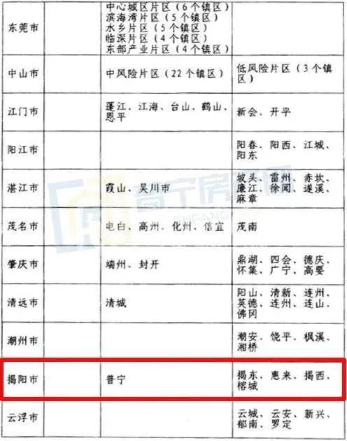 根据评估表,揭阳市普宁属于“中风险区”,揭阳市揭东、惠来、揭西、榕城都属于“低风险区”。根据《交通运输部关于分区分级科学做好疫情防控期间城乡道路运输服务保障工作的通知》(下文简称《通知》),各地应按照辖区内低风险、中风险、高风险县(市、区旗)名单,落实分区分级管控要求,有序恢复道路客运、城市公共交通(含城市轨道交通)和出租汽车(含网约车)等城乡道路运输服务。低风险地区要按照“外防输入”原则,立即全面恢复城乡道路运输服务。