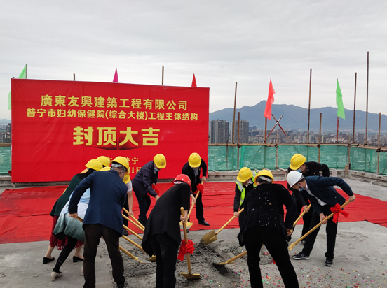 2018年9月21日,普宁市妇幼保健计划生育服务中心升级建设项目(新建综合大楼)在原市中医医院旧址场地内举行开工仪式。项目历时19个月,终于迎来了主体结构的封顶。2020年4月1日上午,普宁市妇幼保健计划生育服务中心升级建设项目(新建综合大楼)举行封顶仪式。
