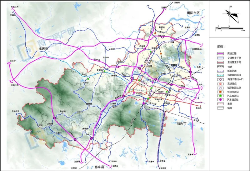 在《普宁市城市总体规划(2015-2035)》中提到,将规划重点控制和预留潮惠高速、汕湛高速、揭普高速、揭惠高速、陆惠高速等重要交通廊道。《普宁市综合交通体系规划(2016-2035)》(草案)中也提到,以铁路和高速公路为骨架,打造集“铁路+公路+城市交通”于一体的综合交通体系,将普宁打造成为粤东商贸物流名城和重要的铁路、公路交通枢纽。规划以普宁市城市规划区为中心,形成“三横两纵”的高速公路网布局,三横为潮惠高速、汕湛高速和陆惠高速。
