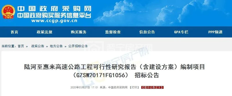 据了解,陆河至惠来高速公路主要位于汕尾市、惠来市,路线北起陆河接兴(宁)汕(尾)高速公路五华至陆河段,路线往东南经陆河、惠来至大南海工业园,路线总长61公里,拟采用双向四车道高速公路技术标准,设计速度120km/h。 陆河至惠来高速是联络国家高速长春至深圳粤境段、济南至广州高速粤境段及汕湛高速的重要联络线的组成部分。途经船埔镇、大坪镇、高埔镇,如果该高速建设完成,以后到珠三角地区更方便,路通财通,期待早日开工!