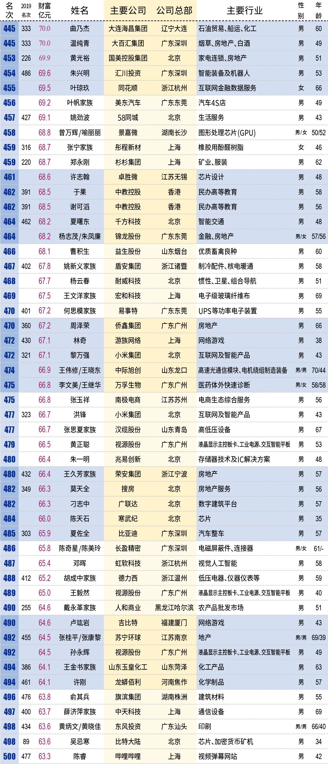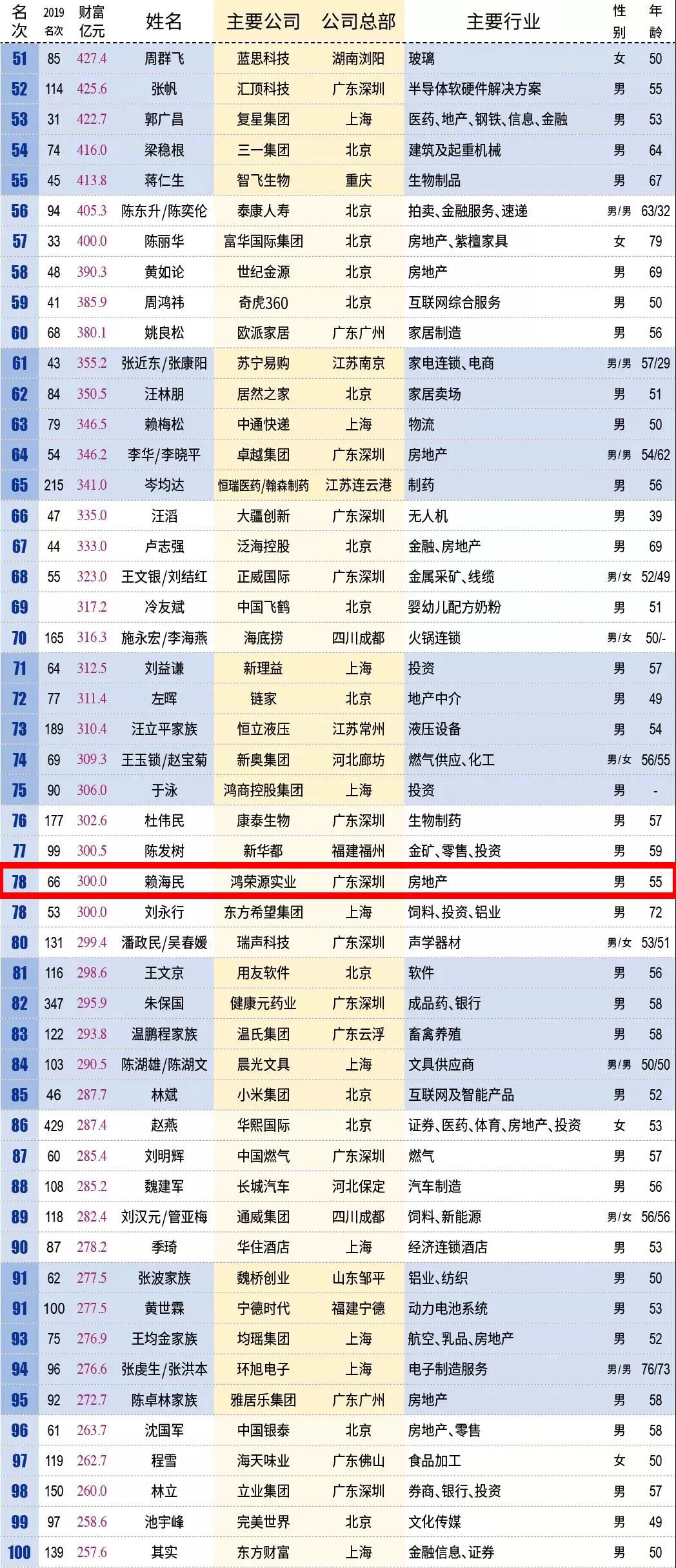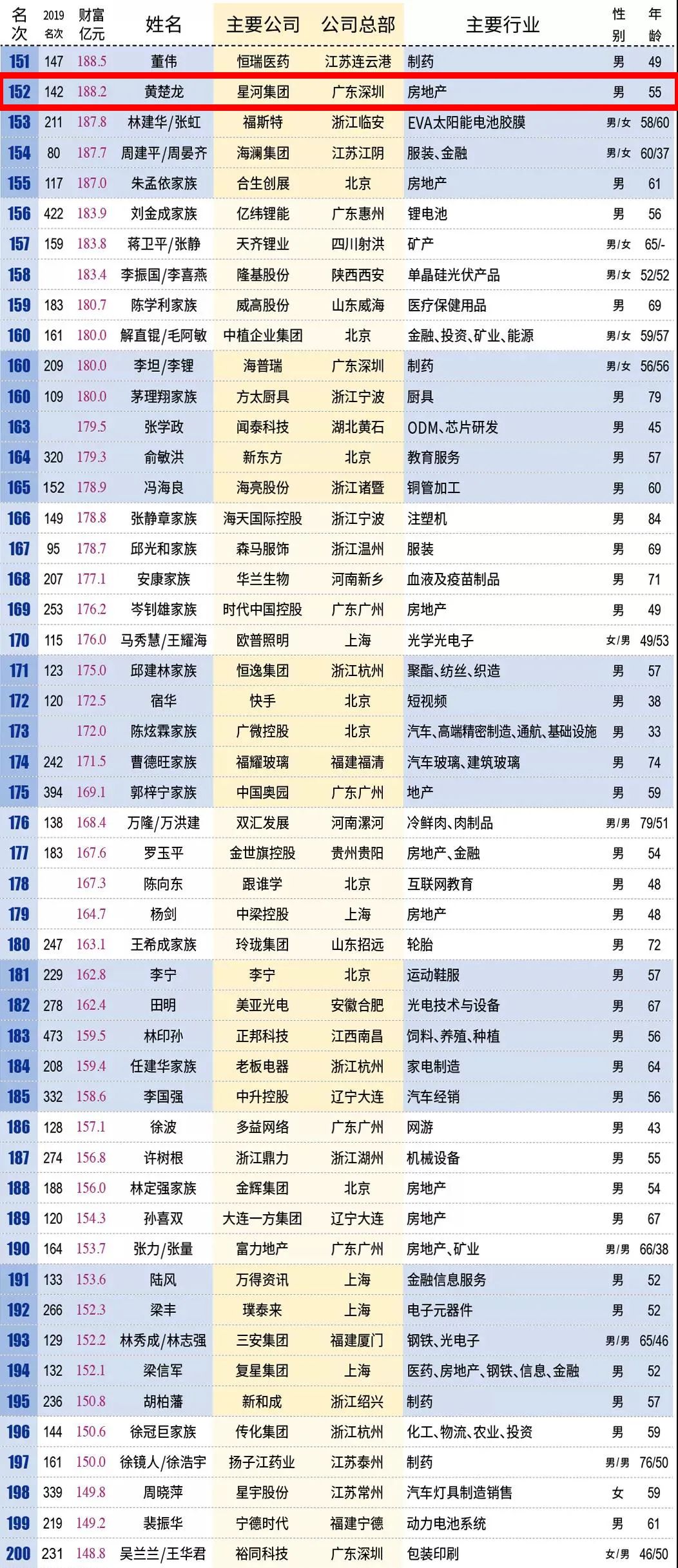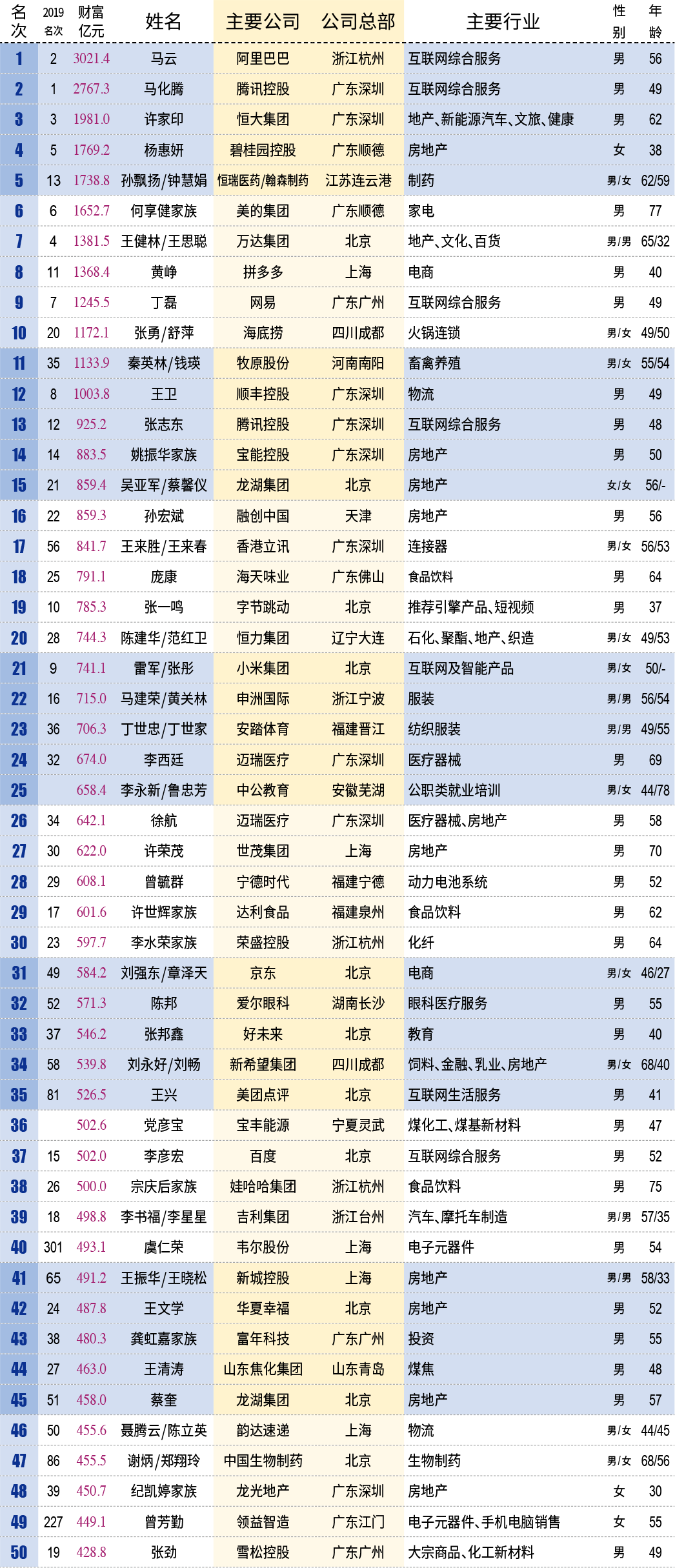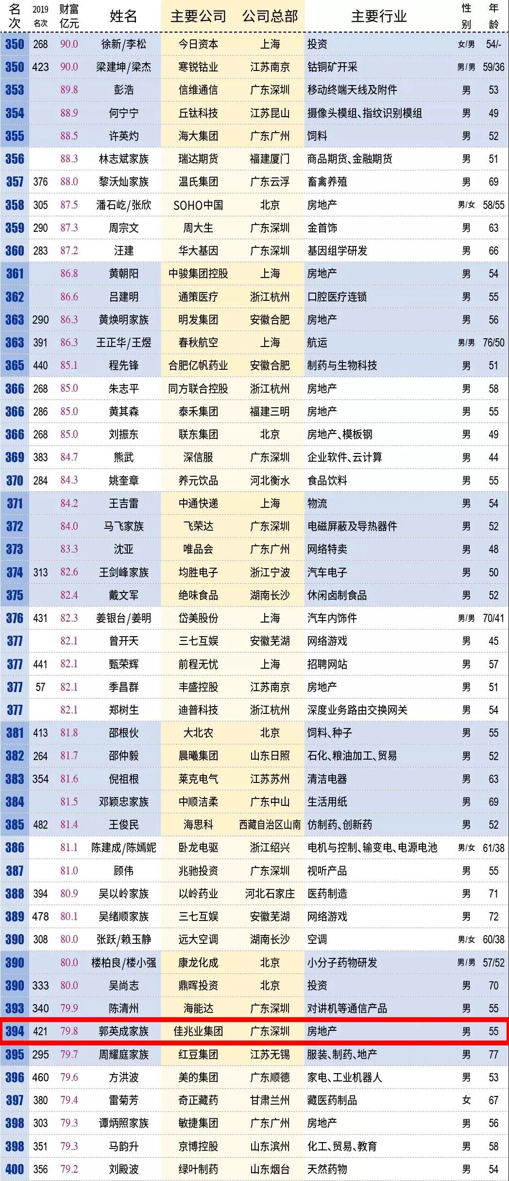 2020新财富500富人榜
