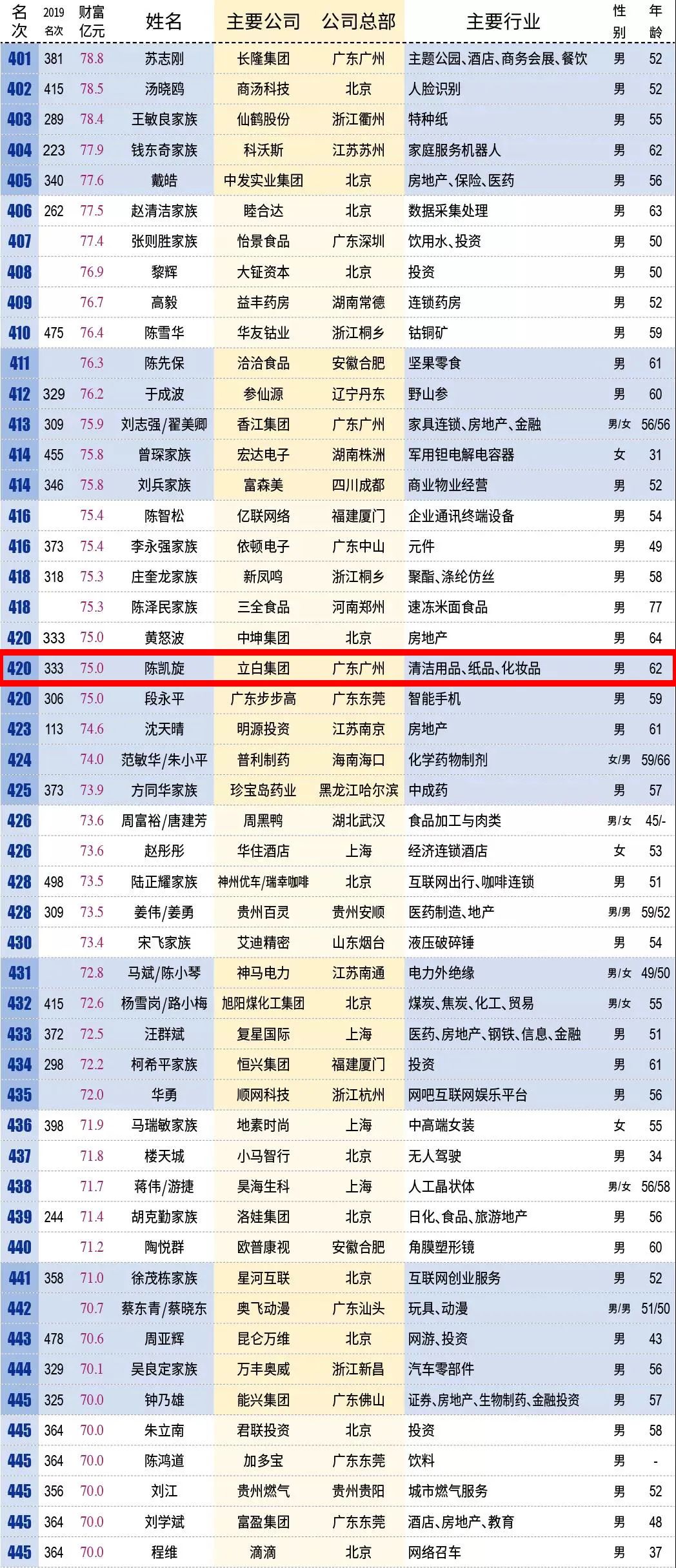 新财富500富人榜,不仅是一份投资指南,也是一份中国头部民营企业生存状况白皮书。近日,2020新财富500富人榜揭晓,其中普宁多位企业家上榜。鸿荣源实业赖海民、星河集团黄楚龙、佳兆业集团郭英成家族、立白集团陈凯旋分别排在第78、152、394、420位。