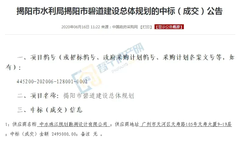 今天,小房君从中国政府采购网了解到,揭阳市水利局发布了揭阳市碧道建设总体规划的中标(成交)公告,中标成交金额为249.5万。将在揭阳市全市市域范围内适宜开展碧道建设的河湖水系,主要针对揭阳市60条碧道水体,碧道长度729km,其中涉及普宁10条碧道水体,碧道长度117.1km。