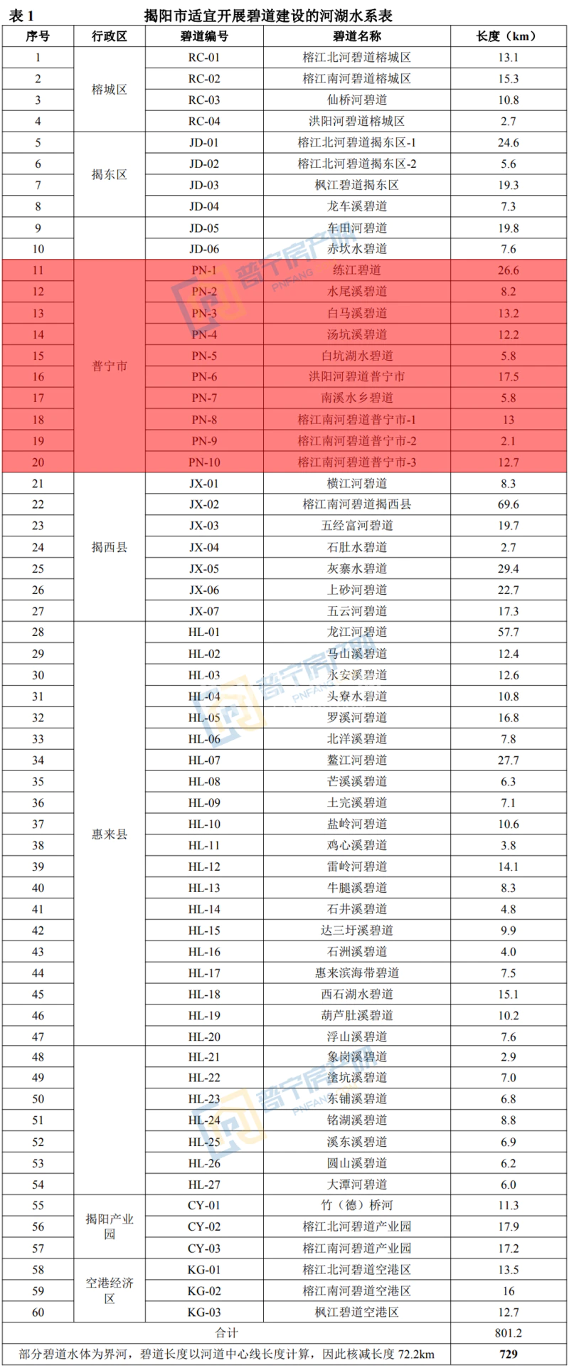 据了解,为深入推进揭阳市碧道建设工作,进一步提升全市水资源、水安全、水环境、水生态、水景观以及游憩设施等建设程度,打造“河清岸绿、鱼翔浅底、水草丰美、白鹭成群”的生态廊道,并有效推动揭阳市河湖长制从“有名”到“有实”转变。揭阳市为更好地指导全市碧道建设工作,结合自身“融湾建带”战略,启动《揭阳市碧道建设总体规划(2018-2035 年)》(下称《规划》)的编制工作。规划现状年采用2018年,规划近期水平年为2022年,规划中期水平年为2025年,规划远期水平年为2035年。本次招标范围为揭阳市全市市域范围内适宜开展碧道建设的河湖水系,主要针对揭阳市60条碧道水体,碧道长度729km,揭阳市适宜开展碧道建设的河湖水系见下表 :