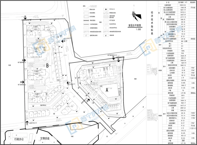 2.项目名称:普宁市洪阳镇和安村居住及市场配套项目4.用地面积:A地块10596㎡,B地块23013㎡,合计33609㎡(50.4亩)