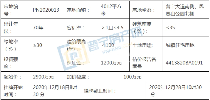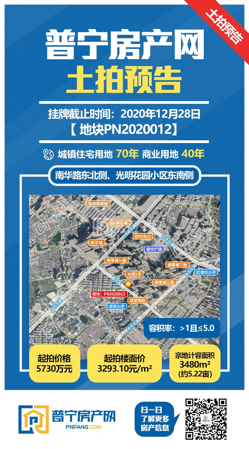 12月土拍来了!普宁三宅地出让,最高楼面价达3293.1元/㎡!