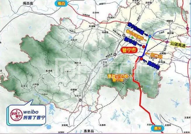 目前汕湛高速普宁段有序推进建设中,建成将促使形成以“普宁市区”为中心,向东连接汕头(潮南、潮阳)、向西连接揭西的大通道,将普宁与周边横向快速交通通道。