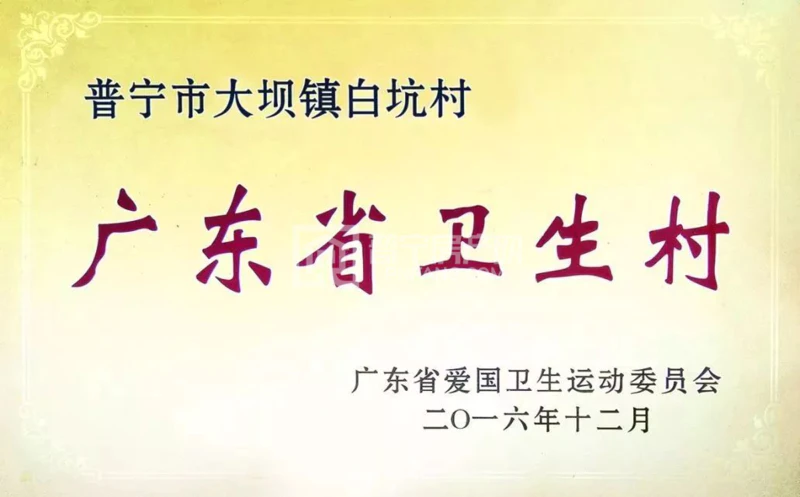 2016年12月,白坑村被省爱国卫生运动委员会授予“广东省卫生村”称号,这是该村深入推进美丽乡村建设收获的硕果。