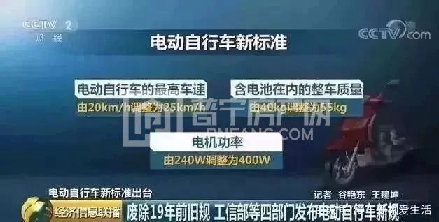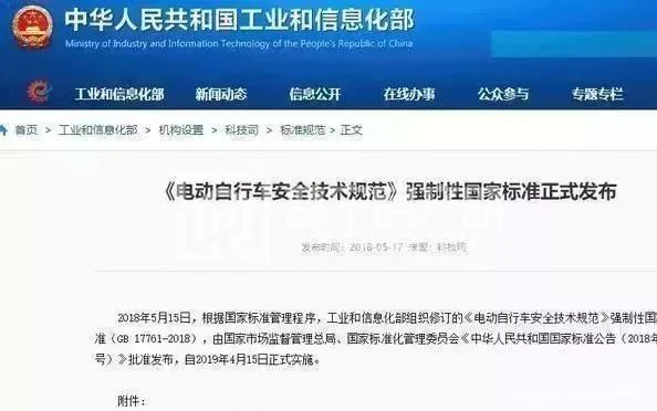 新国标是今年5月份由国家市场监督管理总局、国家标准化管理委员会及工信部等四部门批准发布的《电动自行车安全技术规范》国家标准。新修订的《规范》废除了长达19年的旧规,调整完善了电动自行车最高车速、整车质量、脚踏骑行能力等技术要求,意在保证大众出行安全。