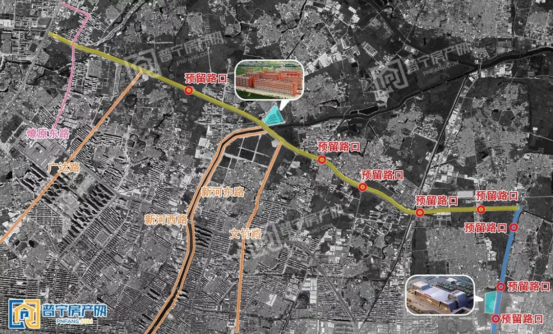 流沙新河是贯穿普宁市区的重要水域,是普宁城市河岸景观轴。在北二环大道建成后,市有关部门积极启动新河东路北段和新河西路北段建设工程,根据工程显示,两条新河道路北延工程分别约1.6公里,规划路宽均28米,道路等级为城市次干路,采用双向4车道的标准横断面。新河东路、西路北段延长线,是练江综合整治的需要,是普宁城市扩容的需要。