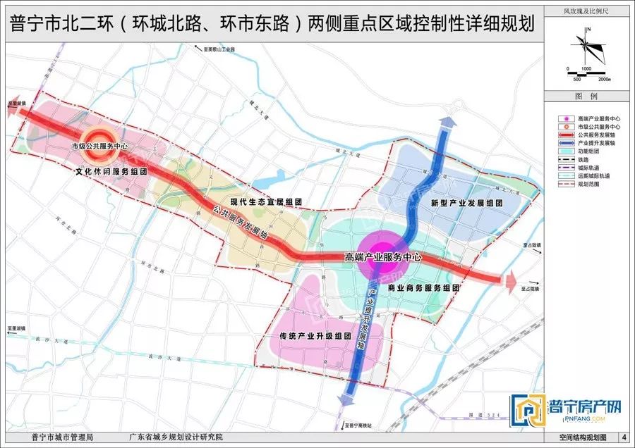 2019年1月21日,《普宁市北二环(环城北路、环市东路)两侧重点区域控制性详细规划》出炉。根据规划显示,北二环规划总面积1467.55公顷,形成“两心两轴五组团”的空间结构。