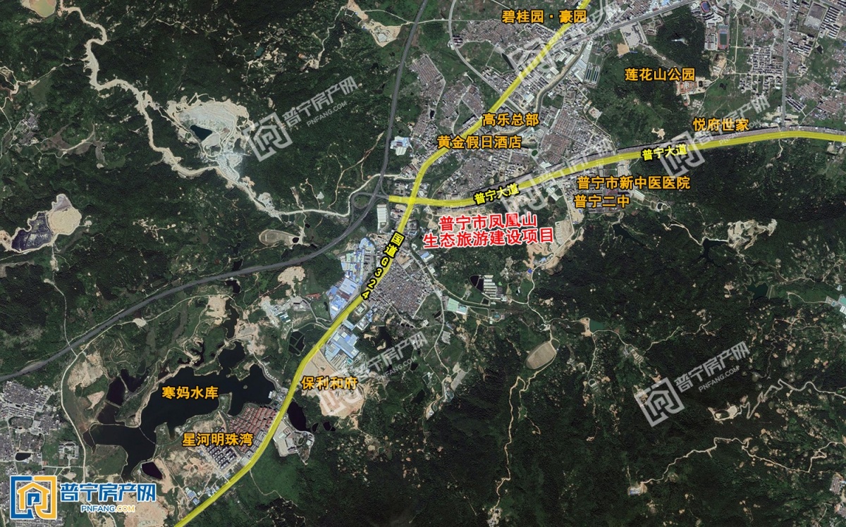 普宁市凤凰山生态旅游建设项目,位于普宁市池尾街道多年山村和青村,总投资费用估算为3.5亿元(首期),建设资金筹措方式为企业自筹解决,承建单位为普宁市新立华投资有限公司,建设周期为2018年-2020年,主要规划建设内容为:本项目建设首期用地约12公顷(180亩),首期建筑面积约5万平方米,凤凰山公园、休闲园林、道路、绿化、商务公寓及园林相关配套设施。