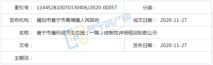 今天,高埔镇人民政府拟对普宁市循环经济生态园(一期)控制性详细规划进行批前公示,公开征询公众意见,公示内容如下:
