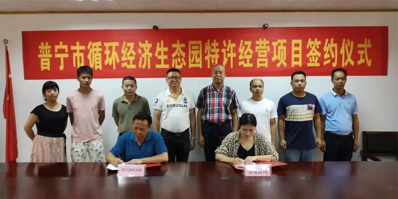 7月1日,普宁市城镇环境卫生管理局受市政府授权委托作为甲方,与乙方金茂(深圳)生态科技有限公司在市环卫局举行普宁市循环经济生态园特许经营项目签约仪式。