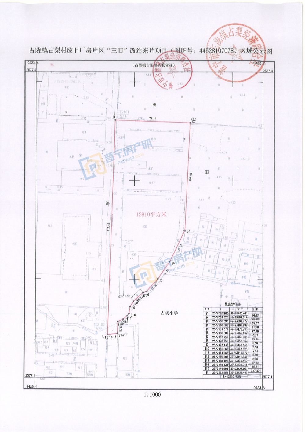 根据国土空间规划和2016年2月24日普宁市人民政府(普府函【2016】16号)文件已经批准的《占梨村废旧厂房片区“三旧”改造单元规划》,我市拟对位于占陇镇占梨村旧村庄范围内的集体旧厂房用地进行改造。
