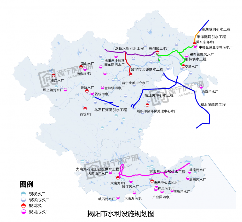 普宁规划建设普宁市北部供水工程、榕江关埠引水工程、乌石(楼盘详情户型图相册地图)拦河闸引水工程,新建普宁北部中心水厂、纺织印染环保处理中心水厂、西坑水厂三个水厂。