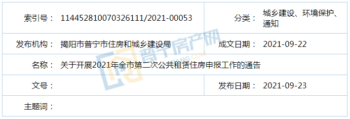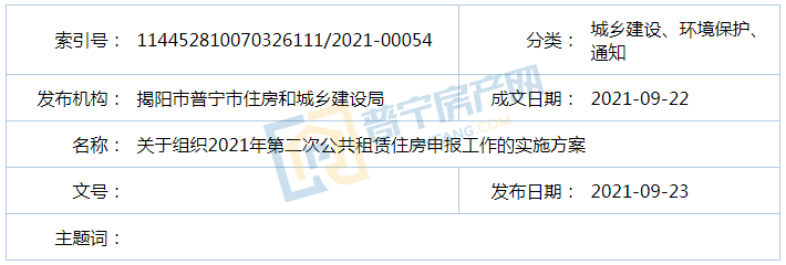 根据《普宁市公共租赁住房2021年配租方案》,结合上一轮公共租赁住房申报工作的实际情况,现组织2021年第二次公租房申请报名工作,有关事项通告如下: