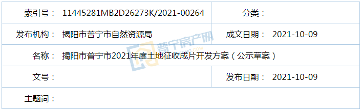 普宁市2021年度土地征收成片开发方案(公示草案)