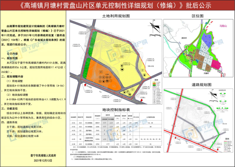 高埔镇月塘村营盘山片区单元控制性详细规划(修编)》批后公示