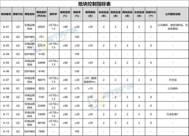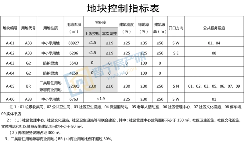 A-01和A-02两个地块的容积率由≤1.5调整为≤1.9,其它地块指标保持不变。