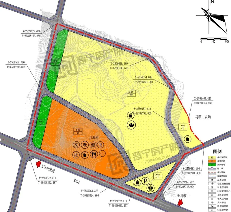 规划在A-01地块的东侧新增了中小学用地(A-06),其它地块保持不变。