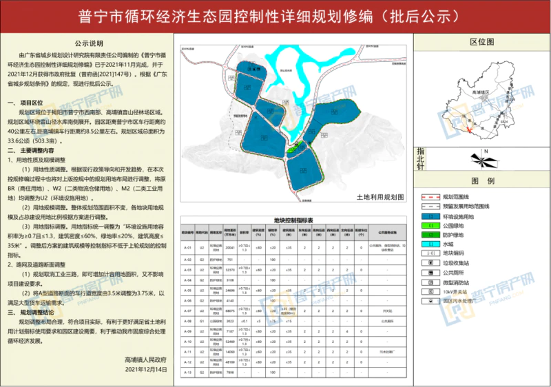 普宁市循环经济生态园控制性详细规划修编(批后公示)