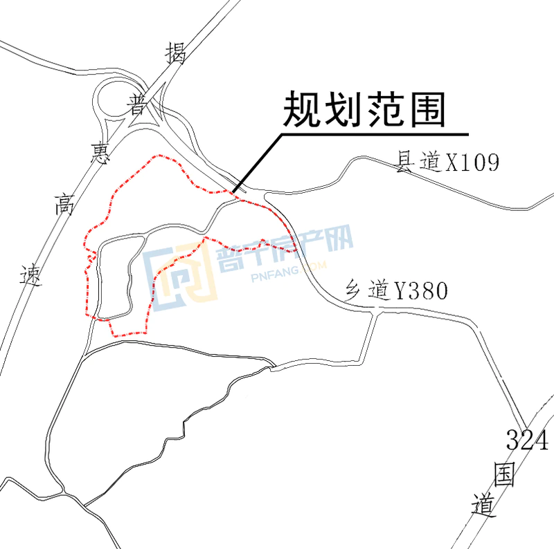 规划区主要对外道路为324国道、揭普惠高速公路、乡道Y380以及县道X109,其中324国道现状道路宽度20米,揭普惠高速公路宽度34米,乡道Y380宽18米,县道109宽度为8米。已建成区道路全部实现了道路绿化、亮化、硬化,道路宽度在6~12米之间。