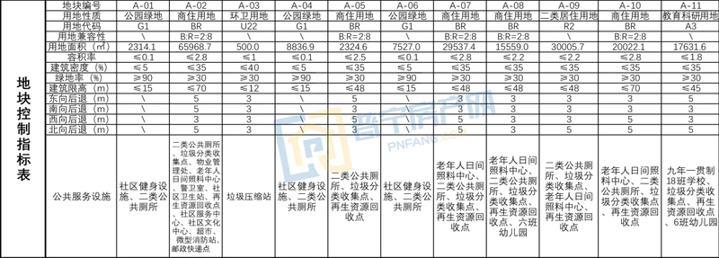 以商住用地、二类居住用地、教育科研用地和公园绿地为主,商住用地包括A-02、A-05、A-07、A-08、A-10地块;二类居住用地为A-09地块;教育科研用地为A-11地块;公园绿地包括A-01、A-04、A-06地块;公用设施用地在A-03地块。