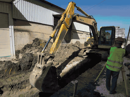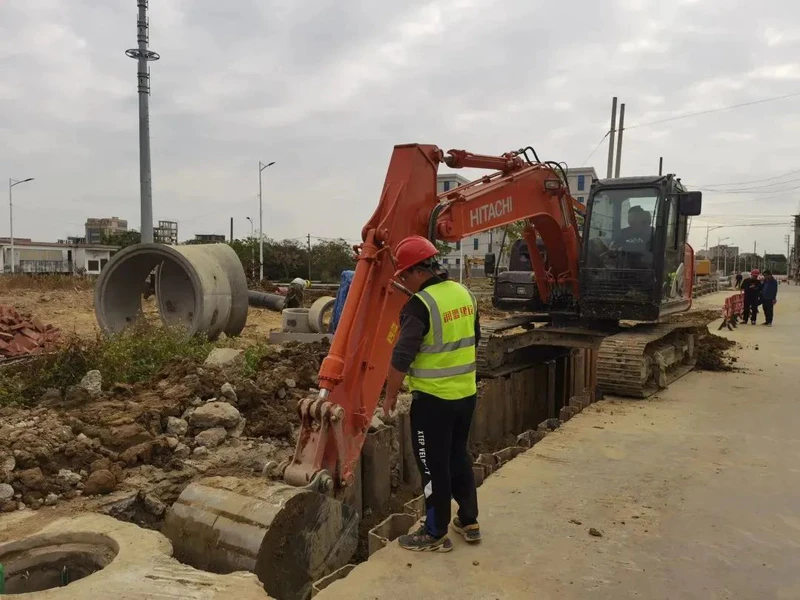 ▲ 结合管网收水需要,施工队既“大手笔”开挖,又“精细化”接驳。