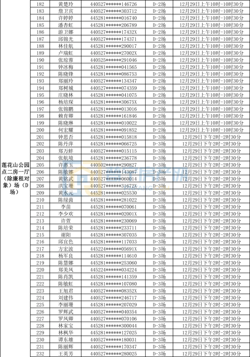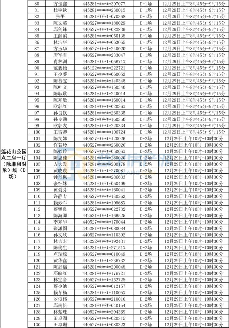 D场次为莲花山公园点二房一厅(除廉租房)房源抽签,且按人数分为D-1场、D-2场、D-3场、D-4场、D-5场五个批次进行。