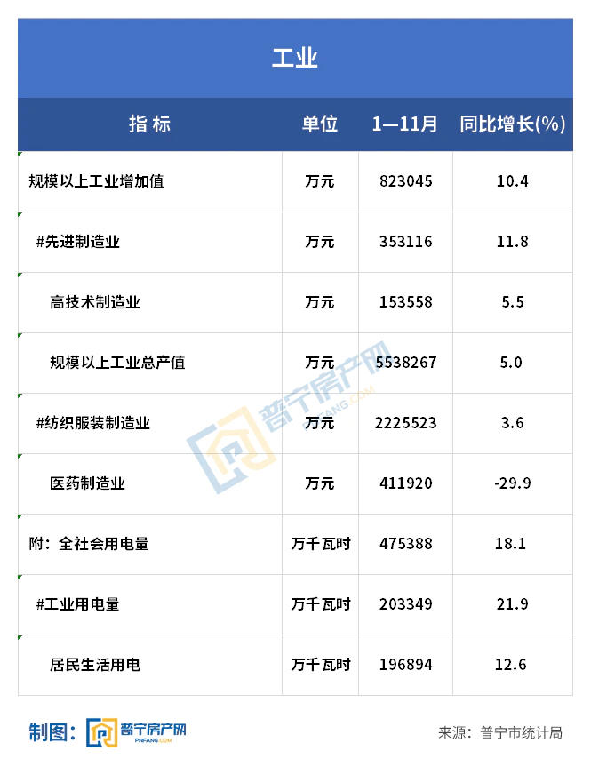 1-11月,全市完成规模以上工业增加值82.30亿元,增长10.4%,增速比去年同期加快18.6个百分点,两年平均增长0.7%。
