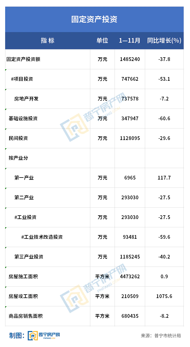 1-11月,全市固定资产投资下降37.8%,增速比去年同期回落31.1个百分点,两年平均下降23.8%。