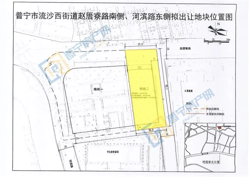 该地块以4505万元的价格被普宁市泓亨实业有限公司拍下,楼面价2548.8元/㎡,将与西侧毗邻地块统一规划建设。