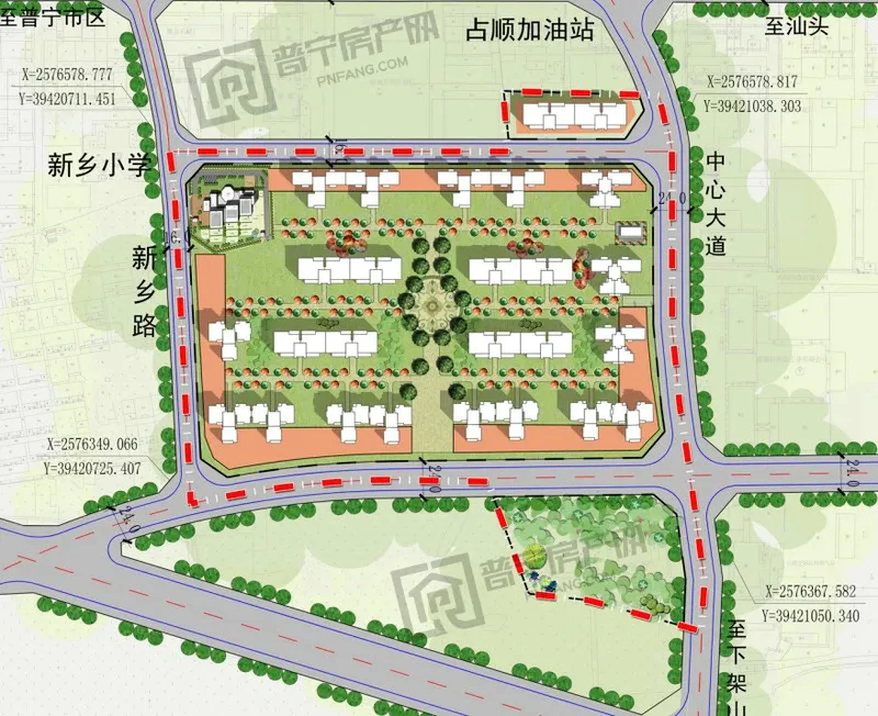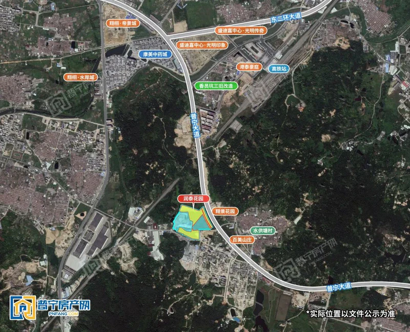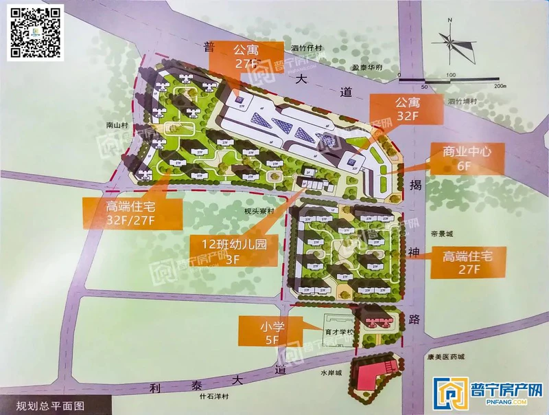 该地块位于普宁大道与揭神路交汇处,距离高铁站仅3公里。涵盖27栋高端住宅、2栋公寓、1栋商业中心、1个幼儿园、1个小学,另外还有1栋安置住宅、1个专业市场等项目。