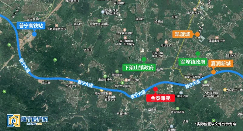 该项目位于普宁市流沙西街道普宁市下架山镇蛟池村(普宁大道南侧),总投资7120万元,由普宁市金泰房地产开发有限公司建设,占地约13.6亩,备案已通过,将是下架山镇首个70年国有产权楼盘。