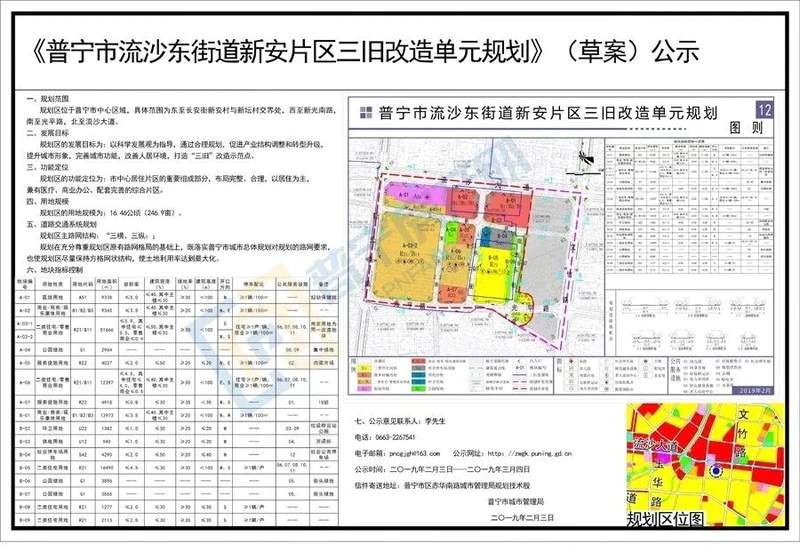 普宁市城市管理局对《普宁市流沙东街道新安片区三旧改造单元规划》(草案)进行了公示。