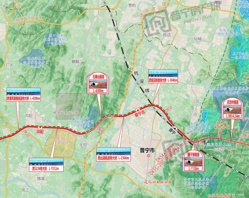 据悉,揭惠铁路普宁段全长约40.47公里,工程规划范围涉及南溪镇典郭村,赤岗镇上洞村、西林村,洪阳镇洪山村、水吼村、北村村、西村村、鸣岗村,大坝镇陂乌村、葫芦地村、 平林村、寨河村、新锡村、大坝村,占陇镇定厝寮村、延长埔村、陂头村、交丙坛村、下村、西湖村、新考村、新北村、西南村,流沙东街道北山村、郭厝寮村、上塘村,流沙南街道石泉美村、马栅村、香员坑村,大南山(楼盘详情户型图相册地图)街道圆山村、益岭村、白马村、灰寨村。
