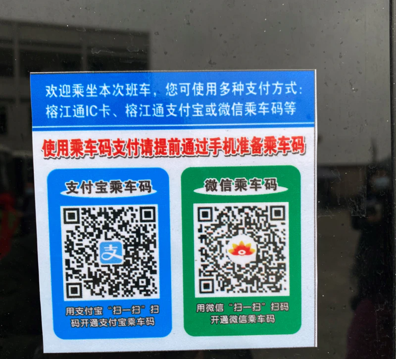 榕江通IC卡、榕江通支付宝或微信乘车码等