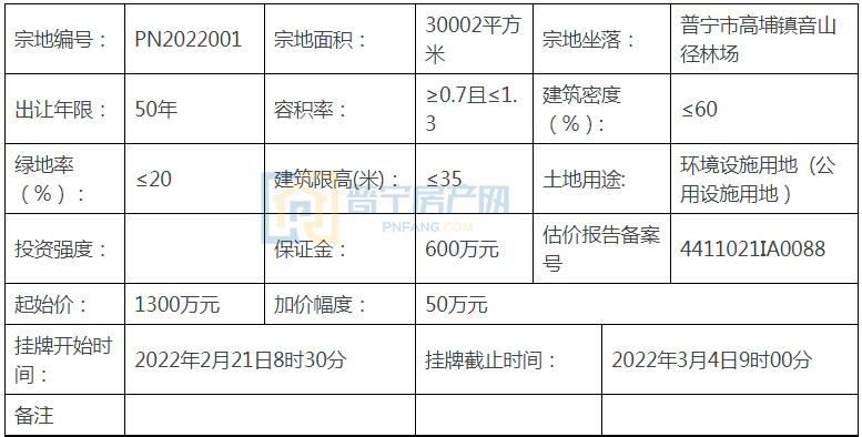 据悉,该地块为普宁市循环经济生态园项目,已列入2021年省重点建设项目名单,也是普宁市“十四五”规划重点项目。本次拍卖地块所有建设内容应严格按照《普宁市循环经济生态园A-12-1地块规划条件》规定执行。