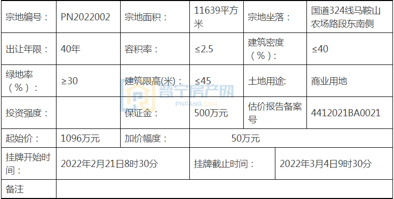 宗地坐落:国道324线马鞍山农场路段东南侧
