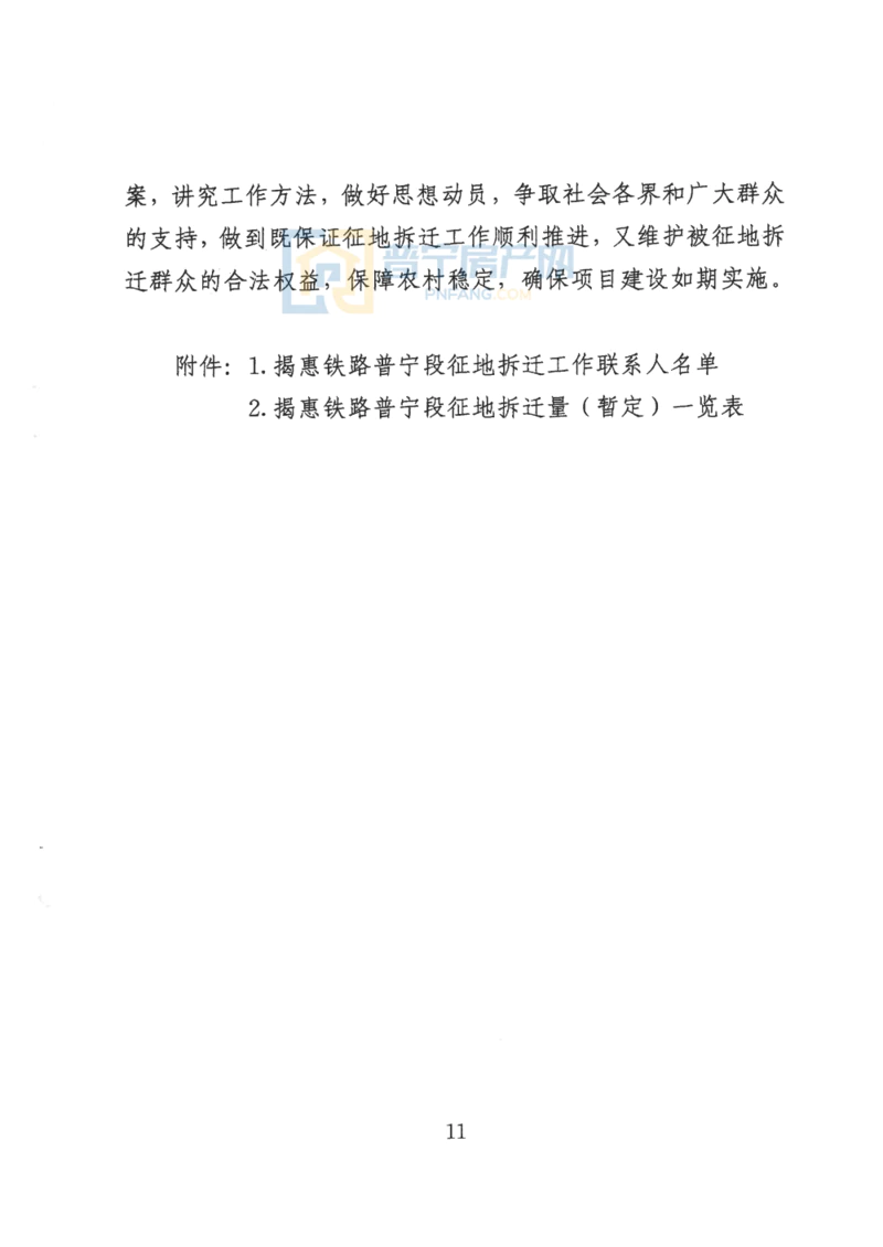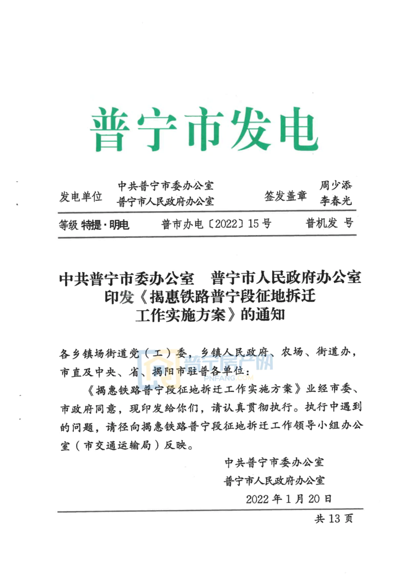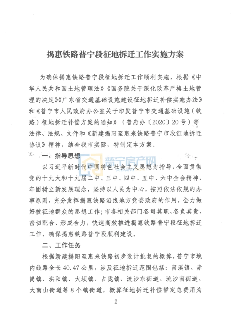 近日,中共普宁市委办公室 普宁市人民政府办公室发布了关于印发《揭惠铁路普宁段征地拆迁工作实施方案》的通知,为确保揭惠铁路普宁段征地拆迁工作顺利实施,制定了本方案。