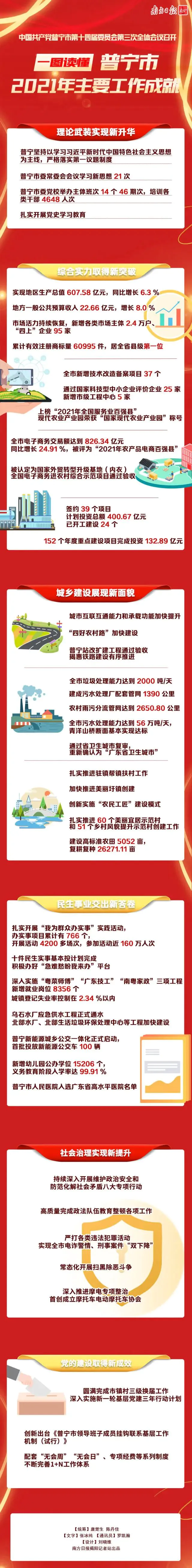2月11日,中国共产党普宁市第十四届委员会第三次全体会议在普宁市区召开,总结2021年主要工作成就。南方+制作了一份“一图读懂”,帮你梳理解读普宁2021年工作“成绩单”。