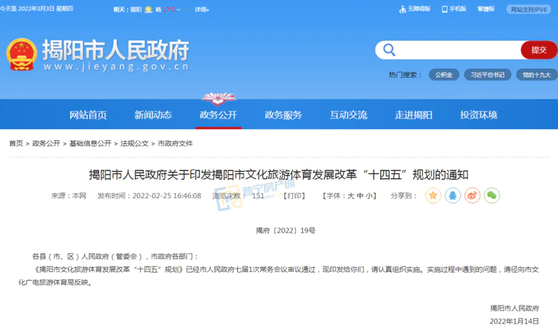 揭阳市文化旅游体育发展改革“十四五”规划涉及普宁内容